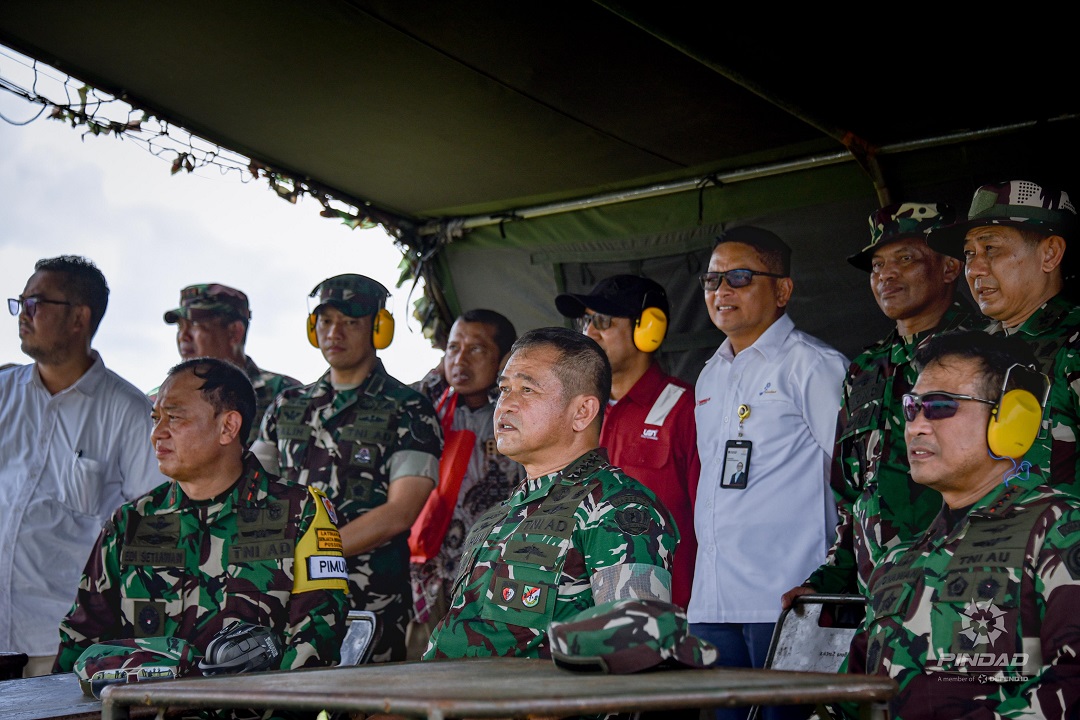 Direktur komersial PT Pindad,Budhiarto mendampingi Kepala Staf Angkatan Darat (Kasad) Jenderal TNI Maruli Simanjuntak, Panglima Komando Pertahanan Udara Nasional (Pangkohanudnas) TNI Marsdya TNI Andyawan Murtiono Putra, beserta jajaran meninjau langsung Latihan Menembak Senjata Berat Artileri Pertahanan Udara (Latbakjatrat Arhanud) yang digelar oleh Pusat Kesenjataan Artileri Pertahanan Udara (Pussenarhanud) di daerah Latihan Dislitbangad, Ambal, Kabupaten Kebumen, Jawa Tengah, pada Rabu 29 Oktober 2025.