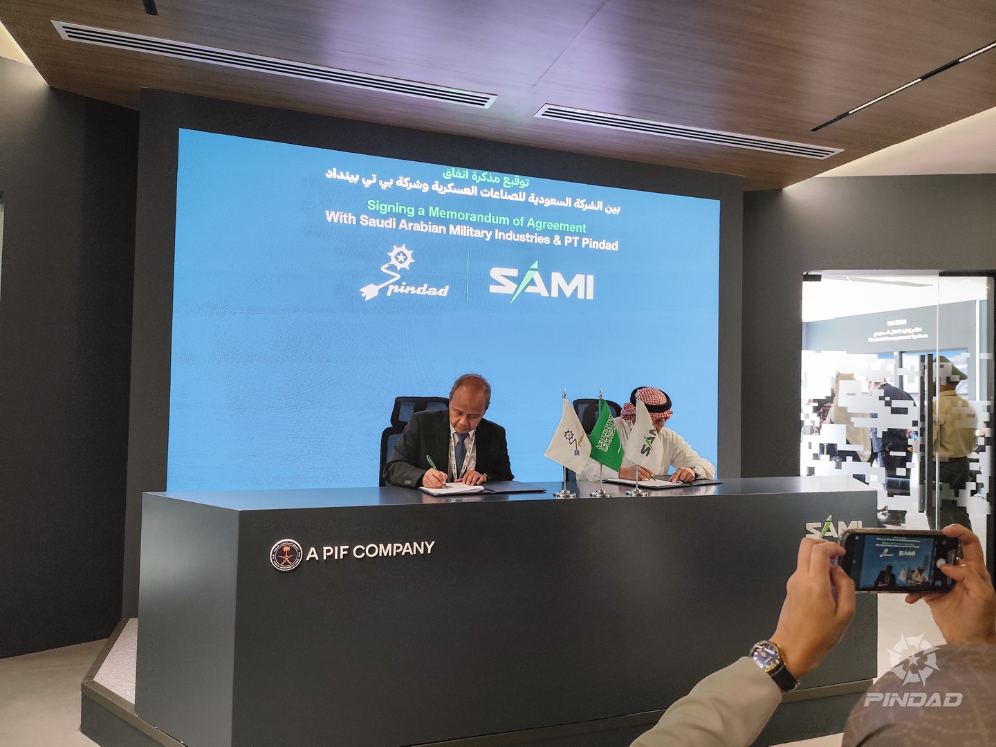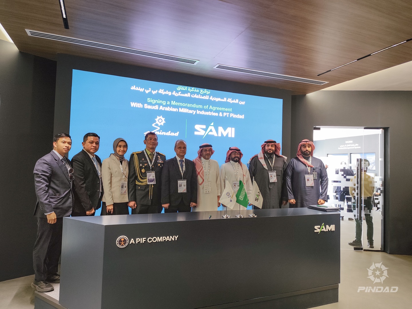 PT Pindad menandatangani Memorandum of Agreement (MoA) dengan Saudi Arabian Military Industries Defence Systems (SAMI DS), industri pertahanan Arab Saudi dalam rangkaian kegiatan World Defence Show 2026 pada 9 Februari 2026 bertempat di Riyadh Exhibition & Convention Center, Riyadh, Arab Saudi. Penandatanganan kerja sama ini dilaksanakan oleh Direktur Utama PT Pindad, Sigit P. Santosa, dengan General Manager SAMI Defence Systems, Mansour Qaed Alharbi. Kegiatan ini juga dihadiri oleh Direktur Produksi PT Pindad; Hera Rosmiati, GM Divisi Senjata, Arif Puji Santoso dan Manager Ekspor, Samuel Zefanya.