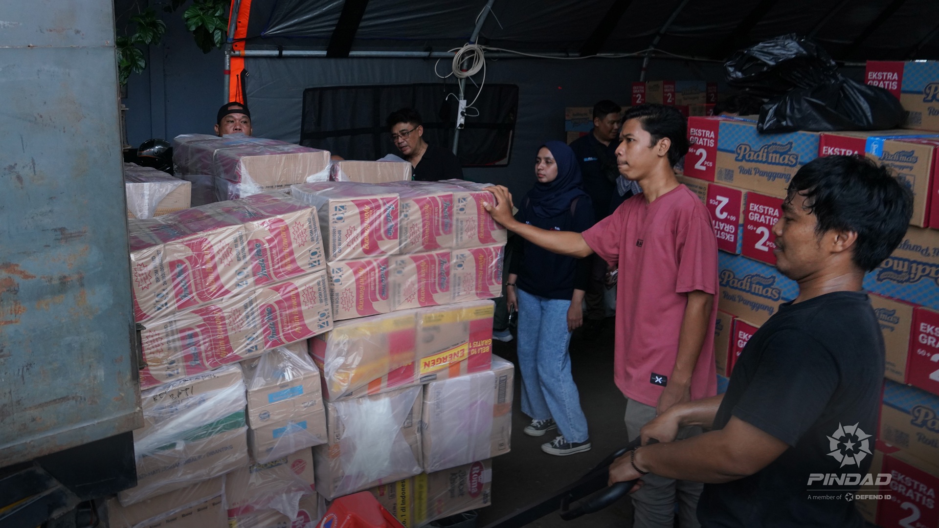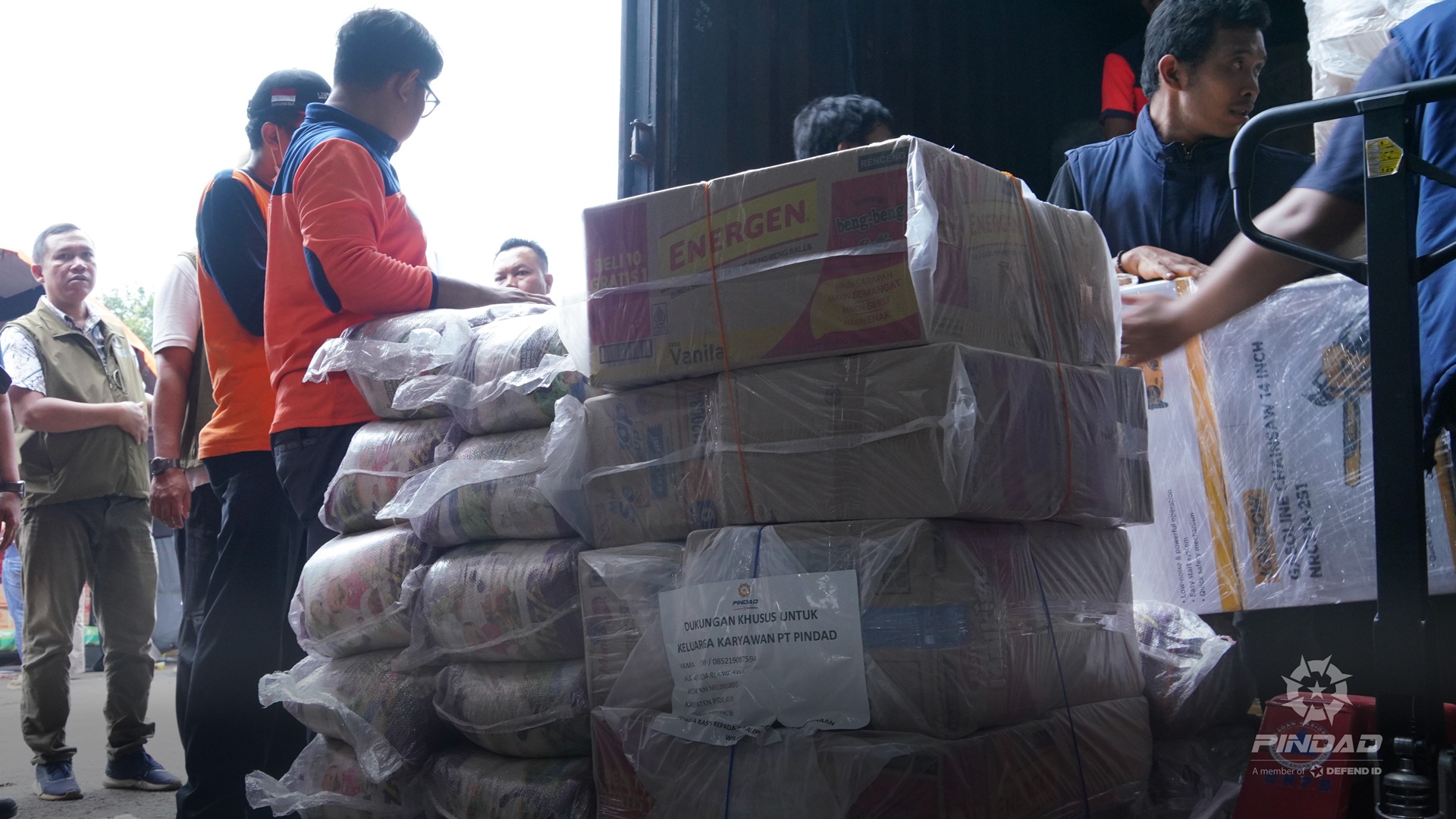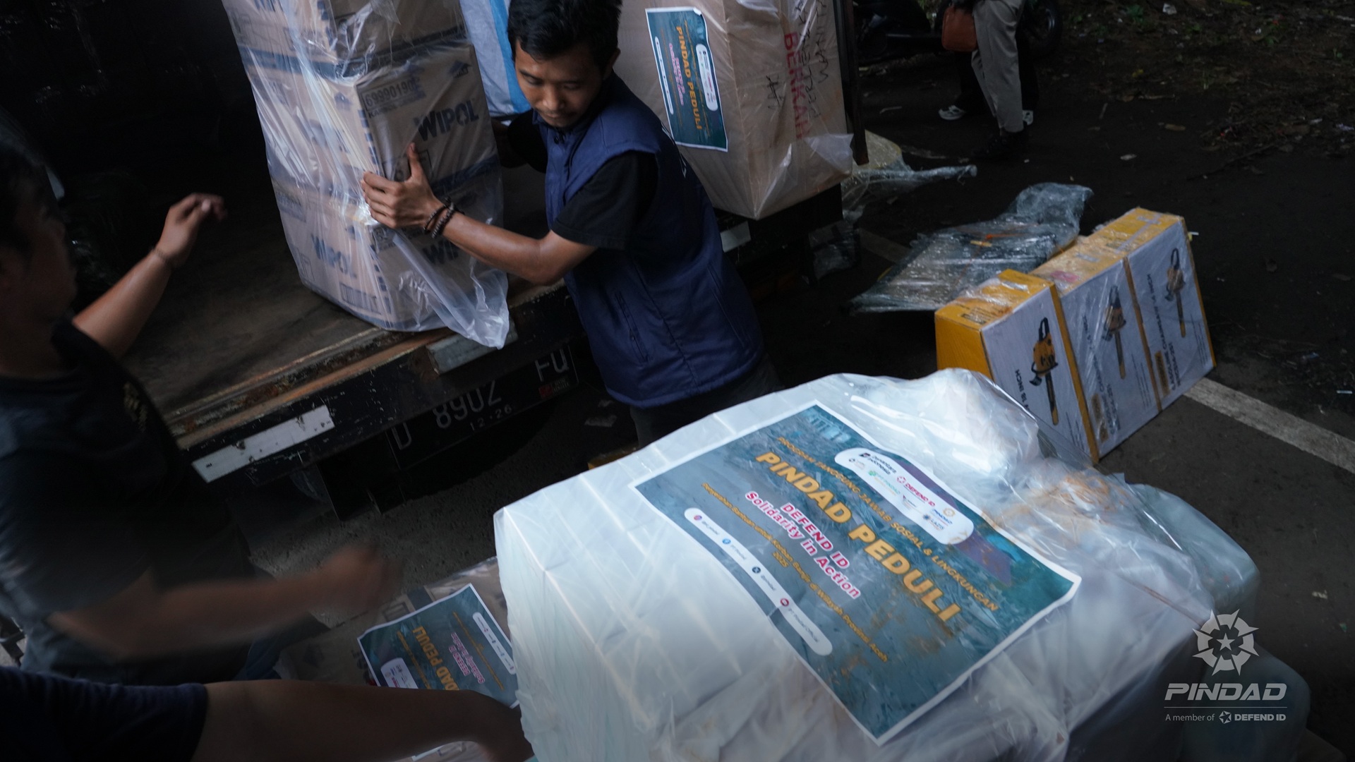 "Hari ini PT Pindad telah menyerahkan bantuan yang tercantum dalam berita acara penyerahan, terdiri dari; makanan, peralatan kebersihan dan perlengkapan. Bantuan ini sudah diterima di kluster logistik nasional yang berlokasi di Landasan Udara Halim Perdanakusuma. Kami atas nama pimpinan BNPB dan Pemerintah Republik Indonesia mengucapkan banyak terima kasih atas bantuan yang telah diberikan dari PT Pindad. Insyaallah segera kami salurkan ke Aceh, Sumatra Utara dan Sumatra Barat." Jelas Rizky.