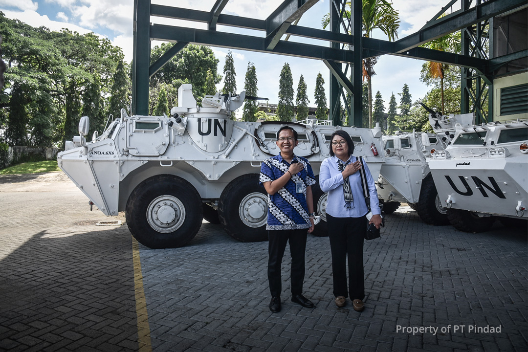 Dalam sambutannya, VP Pengembangan Bisnis PT Pindad Yayat Ruyat menjelaskan bahwa tidak semua negara yang terlibat dalam misi perdamaian di PBB menggunakan alutsista negara masing-masing. “Dalam hal ini kami patut berbangga karena Indonesia terlibat dalam misi perdamaian PBB dan menggunakan alutsista produk Pindad, industri pertahanan dalam negeri. Kami mengucapakan terima kasih kepada Kementerian Luar Negeri dan berbagai Kementerian terkait lainnya yang telah mendukung kami dan melibatkan kami dalam misi perdamaian PBB.” Jelas Yayat Ruyat.