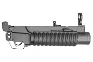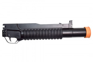 38 mm non-lethal launcher for Law Enforcement use designed to fire various 38 mm cartridges including tear gas, smoke, and rubber balls.